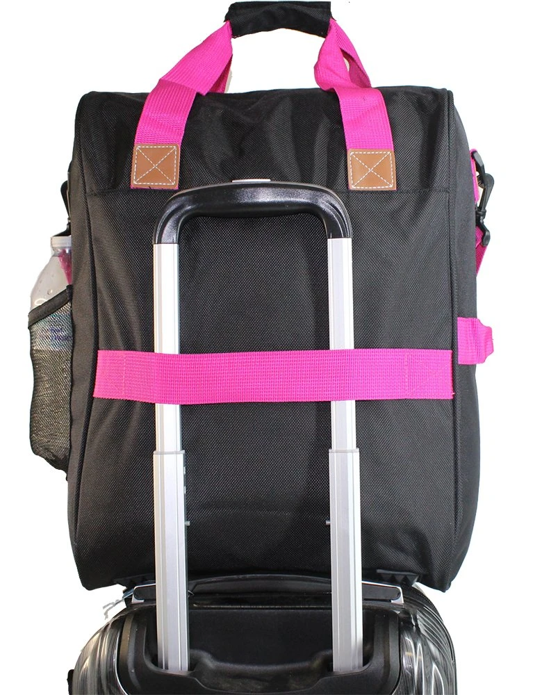 - Multiple pockets for bottle, ipad pocket, accessories, etc. One back strap (A bag can be strapped on top of another carry on)