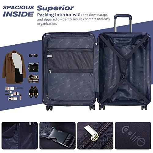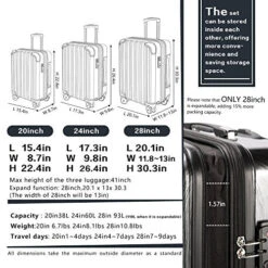 - The luggage is offered in three sizes. The 20 inch carry-on is designed to fit in the overhead bin of any common flight. The 24 inch luggage is an ideal one for those who are looking for larger luggage space but don’t want it too big to be carried away. The 28 inch expandable one gives you extra space to pack more at any time you want.