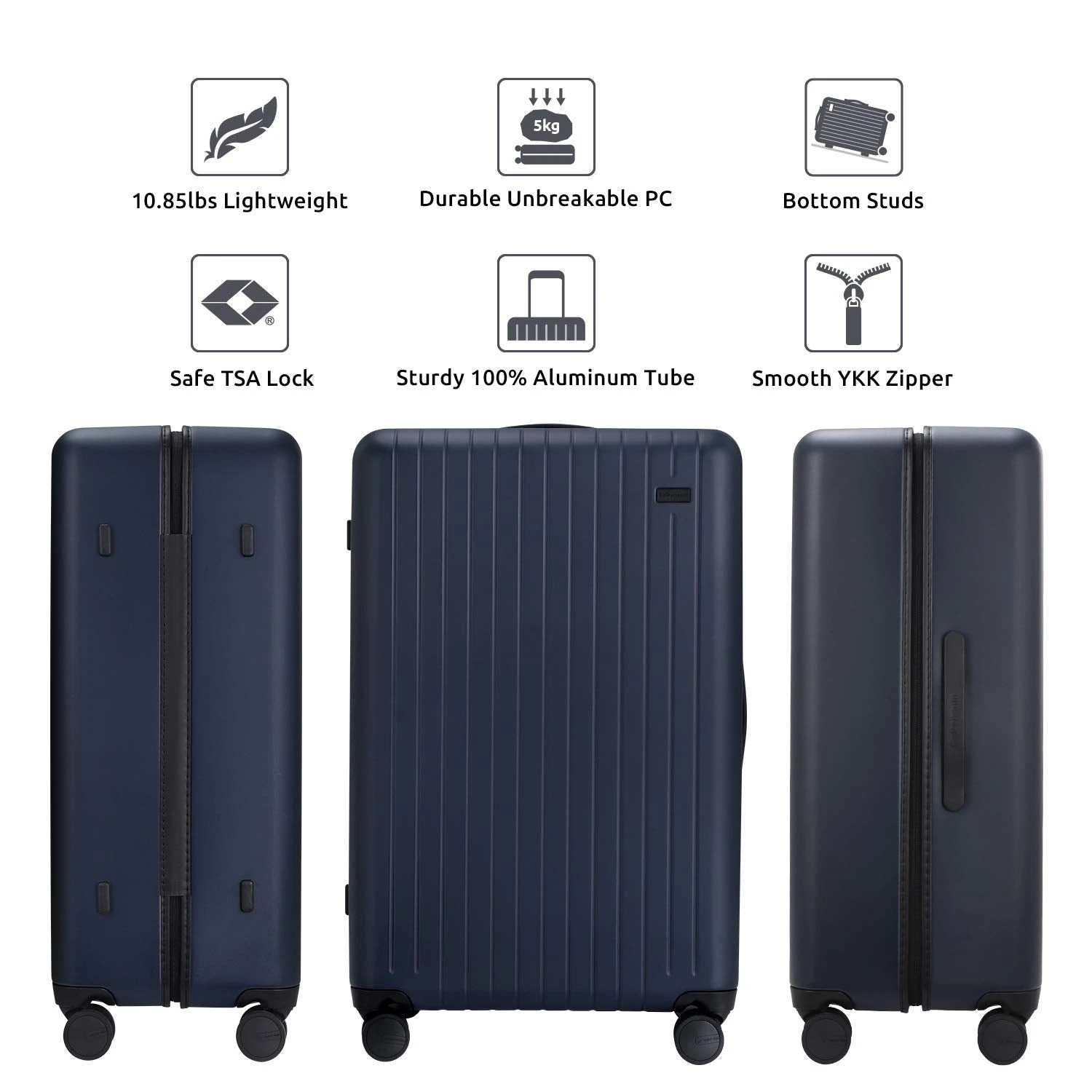 - UNBREAKABLE LIGHTWEIGHT SHELL – Weighing at only 8.93 lbs, the 26 inch luggage is built from German-made 100% Makrolon Polycarbonate(bullet-proof glass raw materials) This hardshell is lighter than aluminum but more durable than ABS while the matte finish and elegant color selection make it invincible. The bag’s eye-catching design will turn all eyes at the airport and throughout your journey.