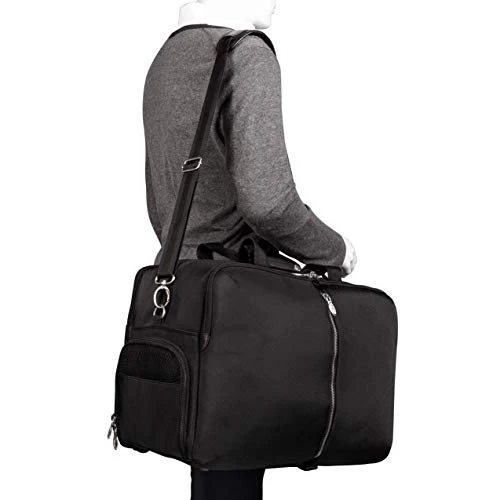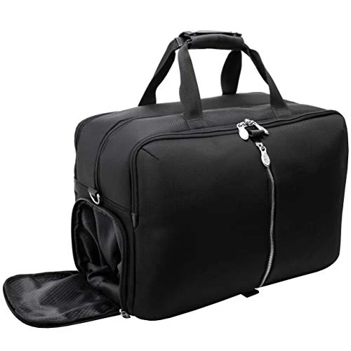 Details: A true modern all-purpose travel duffle bag capable of carrying everything in its spacious 22” compartments. Carrying in comfort and stability with the conveniently designed double snap handle wrap. Easy access Travel essentials through the full length front vertical zipper compartment. The bag is fully lined with leather accents and silver hardware to make storage easy and pleasant. Keep your cell phone and keys easy to access with the front compartment business accessory organizer. The middle compartment is amazingly roomy with front and back elastic pockets to store your toiletries and shoes. The back compartment features a 17” laptop/tablet pocket and a file divider to keep all your important devices and documents secure. Carry in comfort with the full length, adjustable, non-slip, detachable leather padded shoulder strap. Set It down with Confidence on five protective feet. Convenient side shoe pocket for extra kicks and comfort.