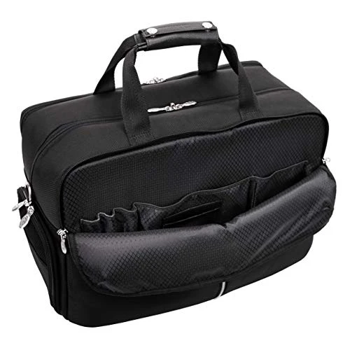- Front compartment has a business accessory organizer.