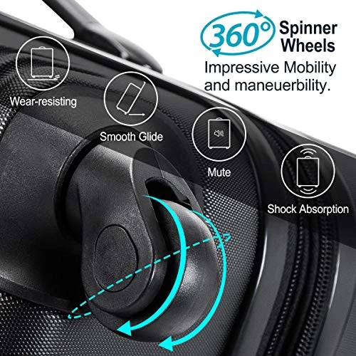 - Smooth 360° spinner wheels for impressive mobility and maneuverability. Top and side carrying handles available.