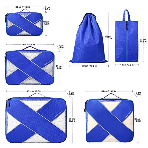 Details: P.travel 6pcs Packing Cubes Travel Luggage Packing Organizers(Blue)