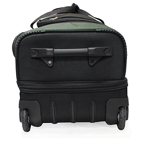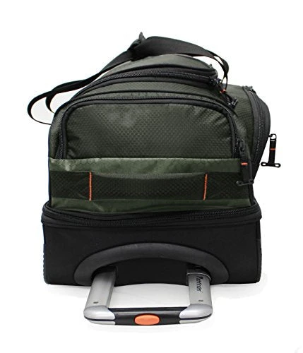 - Oversized main compartment with top access and zippered panel separates the lower drop bottom compartment
