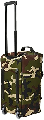 Details: Travel in style with this great soft-sided rolling duffle bag. Bag features a heavy duty polyester construction. Inline skate wheels for superior mobility, internal retractable hide-away handle system, u-top opening provides easy access to roomy zipper secured main compartment. Two front zipper-secured compartments, adjustable ergonomic shoulder strap. Made of 600 denier heavy duty polyester. Measures 22″ L x 12″ W x 11″ H
