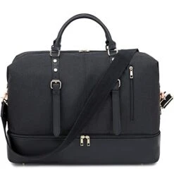 Canvas Overnight Bag Oversized Travel Duffel Leather For Men And Women Weekender Tote (Black-D)