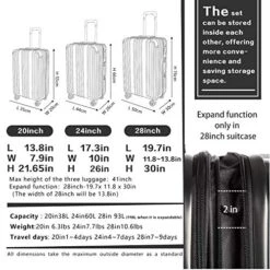 - Overall Dimensions: 13.5″ x 8″ x 21″, net weight of the suitcase is 8.82 lbs. Capacity: 30L.