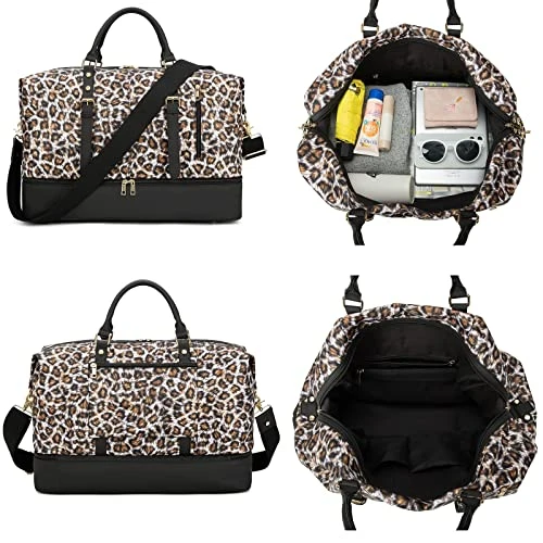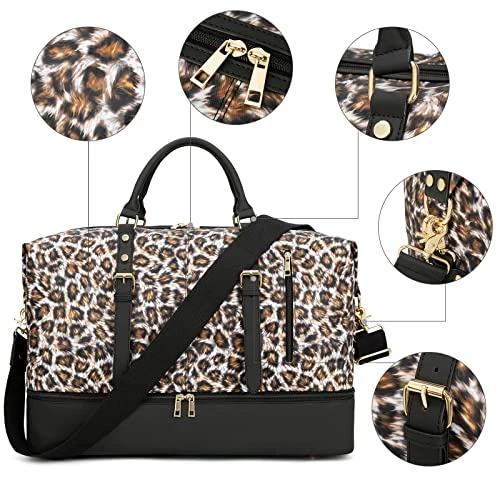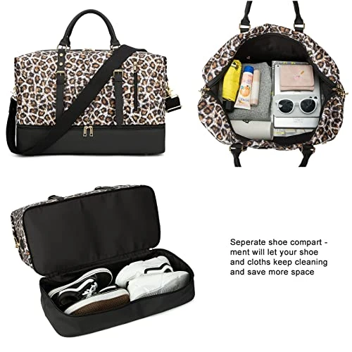 - Brand new Leopard travel duffel bag upgraded on material and leather, as well as the new function: a separate shoe compartment on the bottom which is useful for putting your dirty shoes seperate from your clean clothes while travelling