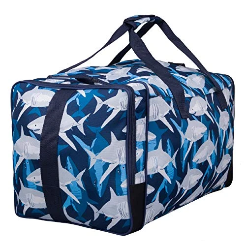 Details: Make packing for sleepovers, sports practice, and trips to grandma’s a breeze with Wildkin’s Weekender Duffle Bag! Measuring 22 x 12 x 12 inches, its roomy design easily fits everything your child needs, while being lightweight enough to ensure that they don’t get weighed down. The Weekender Duffle Bag is sized to fit in an overhead bin when used as a carry-on, so your child will never have to travel without it! Its roomy interior means your child can pack more than just the bare necessities! Use the spacious front pocket and two side pockets to conveniently store and access those items they’ll need in a flash. Whether they’re packing cleats and snacks for soccer practice, or pajamas and their favorite teddy bear for a fun-filled sleepover, this duffle stores it all. The exterior zippered compartment conveniently stores the most important items so that your child can access them in a flash. Each Weekender Duffle Bag is made from 600-denier polyester with a moisture-resistant nylon interior to ensure that whatever your child stores inside remains safe and dry. In addition to its durable design and spacious interior, each Weekender Duffle Bag features an adjustable, removable padded shoulder strap and two carrying straps that can be secured in a hook and loop fastener grip handle for easy transportation. Your child will have everything they need with our Weekender Duffle Bag by their side! As always, all of our Weekender Duffle Bags feature vibrant, playful patterns, so your child will love this fun new addition to their school and travel gear. Can’t get enough of our awesome patterns? Each Weekender Duffle was designed to coordinate with other Wildkin gear, so go ahead and make a theme out of it! From lunch boxes, to back packs, to sleeping bags, your child will love having their favorite designs with them on-the-go. Spot clean only. 90-day manufacturer’s warranty against defects – normal wear-and-tear, and misuse excluded. Rigorously tested to ensure that all parts are lead-safe, bpa-free, phthalate-free, and conform to all rules and regulations set forth by the Consumer Products Safety Commission